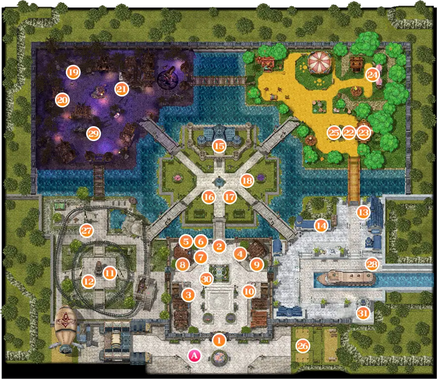 イベントマップは、それぞれテーマにあったエリアに分かれていて、世界的に有名な遊園地をイメージするとわかりやすいと思います。